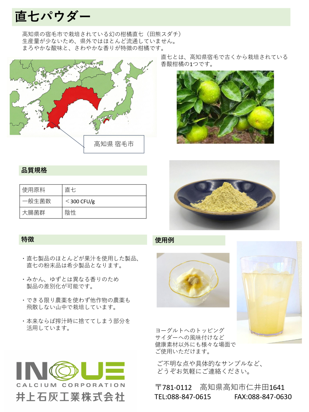 ・直七製品のほとんどが果汁を使用した製品、直七の粉末品は希少製品となります。